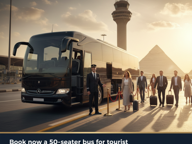 Looking for a high-end Luxury Car with Driver and reliable group transport? Limousine Egypt provides the Mercedes 50-Seater Bus 2025 with a professional chauffeur. This is the optimal #AirportTransfer solution for comprehensive tourist transportation in Egypt.