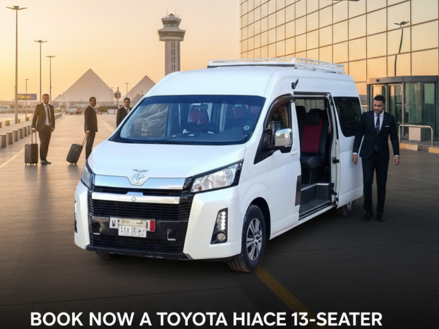 Looking for a luxurious and spacious solution for family or delegation transfers in Egypt? Book your Luxury Car with Driver service from Limousine Egypt now! We offer the latest Toyota Hiace Minibus (14-Seater) 2025 Model in sleek black.